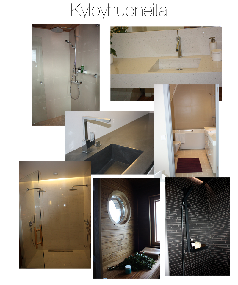 Keittiöistä en tehnyt kollaasia, sillä niissä ei oikeastaan ollut mitään uutta. Paljon oli vetimettömiä kaappeja ja valkoisia keittiöitä. Myös kaikki kylpyhuoneet olivat hyvin saman tyyppisiä. Kauneimmat kylpyhuoneet oli minusta Kannustalon kohteissa.