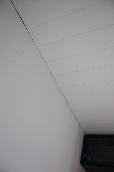 | Varaston katto paneloitiin valkoisella mdf-paneelilla |