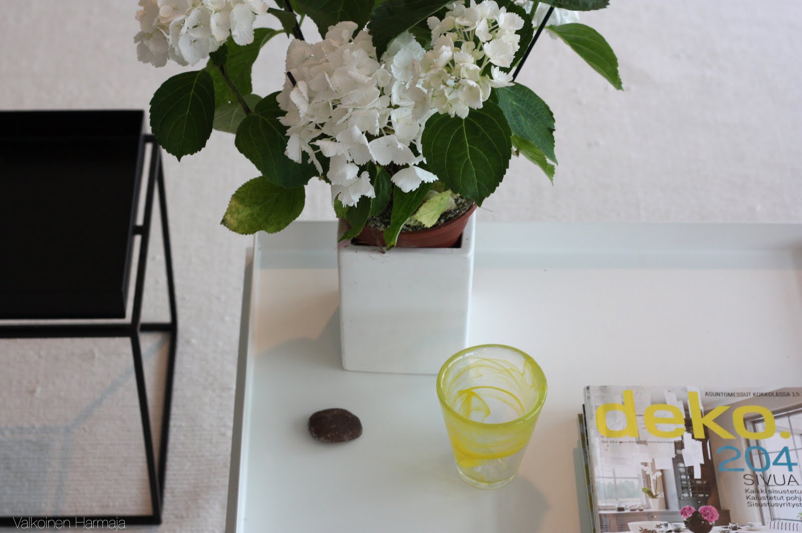 Ostan kerran viikossa kauppareissulla uuden kukan olkkarin pöydälle. Tuo hortensia tarttui mukaan eilen. Se on ehkä vähän liiankin iso tuohon ja sopisi paremmin sivupöydälle. Pitäisi sitten vaan löytää joku yhtä kiva mutta pienempi kukka tuon tilalle…