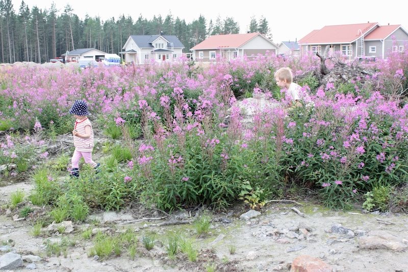 Lapset tykkäsivät temmeltää tontilla ja vilkuilivat uteliaina naapureita.