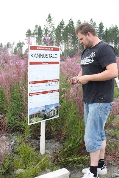 Tänään tapahtui pientä edistystä tontilla: kävimme pystyttämässä sinne nimikyltin. Se oli merkittävä hetki, joka jää mieleen.