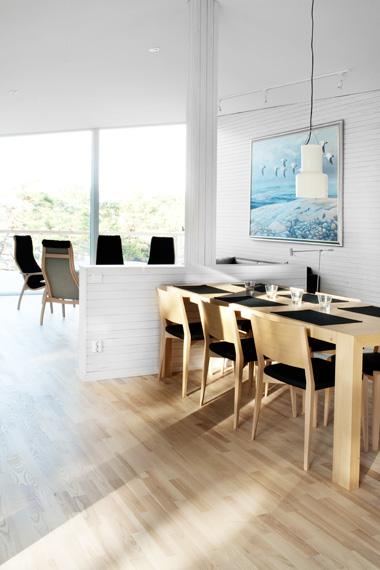 Alustavasti olimme ajatelleet saarniparkettia. Minua mietityttää kuitenkin, onko se liian trendikäs valinta? En muista, että saarnia olisi muutamia vuosia sitten näkynyt/ollut saatavilla yhtä paljon kuin nyt. Onko se siis ajaton valinta? Joitain vuosia sitten suosittua oli laittaa tumma lattia – nyt taas muodissa ovat vaaleat ja täysin valkoiset lattiat. Uskon, että valkoinen lattia on ajaton joka tapauksessa, mutta jos haluaa pikkuisen lämpimmän näköisen lattian, voisi valkolakattu/öljytty parketti olla hyvä vaihtoehto. Mutta entäs puulaji? Ja mikä lattiasävy sopisi parhaiten koivuisen ruokapöytämme kanssa, vai pitäisikö pöytä maalata? Katselimme sekä tammi- että saarniparketteja ja pähkäilimme. Lopulta tulimme siihen tulokseen, että kyllä meidän talon henkeen taitaa parhaiten sopia valkoöljytty saarniparketti. Siinä ei ole niin näkyviä puunsyitä ja oksia kuin tammessa. Nyt tuntuu tältä, mutta saa nähdä muuttuuko vielä mieli, sillä päätöksiä ei vielä tarvitse tehdä.