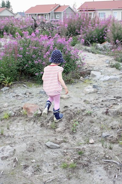 Lapset tykkäsivät temmeltää tontilla ja vilkuilivat uteliaina naapureita.