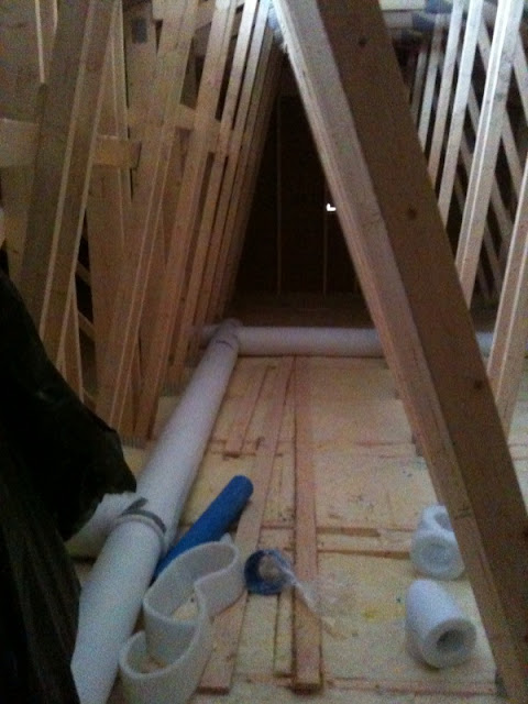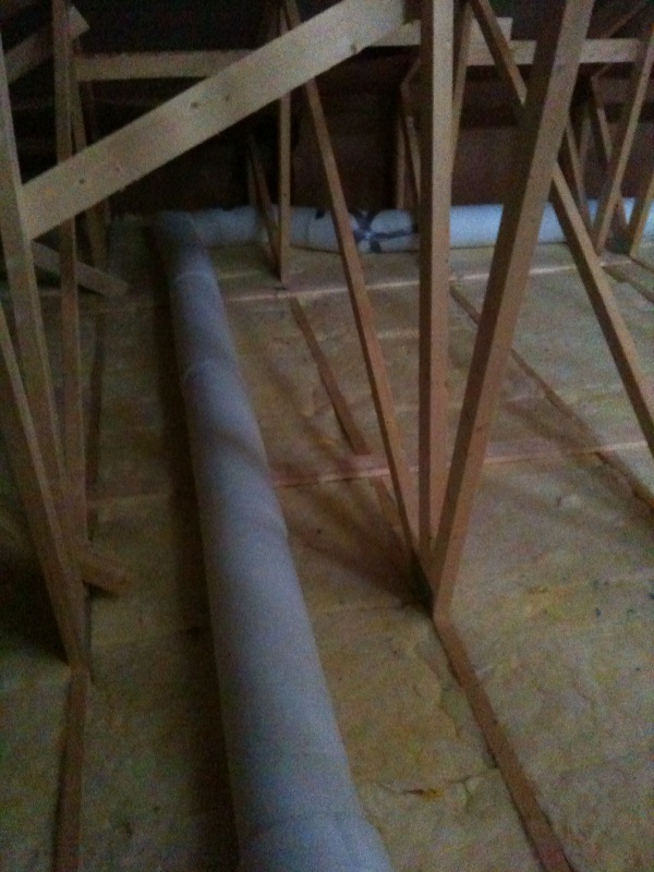 Mankku (siis mieheni Magnus – tuntuu oudolta sanoa Magnus, sillä kaikki kutsuvat häntä Mankuksi) aloitti viikon alussa ilmastointiputkien asennuksen ja pääsi hyvään vauhtiin. Enää on asentamatta pieni osa. Hän on erittäin tyytyväinen, että valitsimme nämä muoviset ”helpommat” ilmastointiputket kuin ne ”työläämmät”, joiden eristämisessä on isompi homma. Eka raksaprojektissa ilmastointiputkien asennukseen kului kolme viikkoa, kun nyt tällä kertaa siihen menee yhteensä kolme-neljä iltaa.